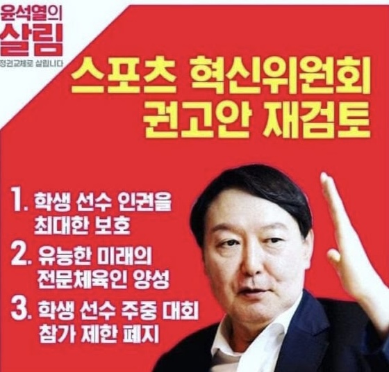 윤석열 대통령은 후보 시절 스포츠 공약으로 '학생 선수 인권 보호', '미래 전문 체육인 양성', '학생 선수 주중 대회 참가 제한 폐지' 를 내세웠다. 그러나 집권 29개월이 지난 지금, 이 약속들은 지켜지지 않았고, 체육계는 여전히 혼란 속에 있다.