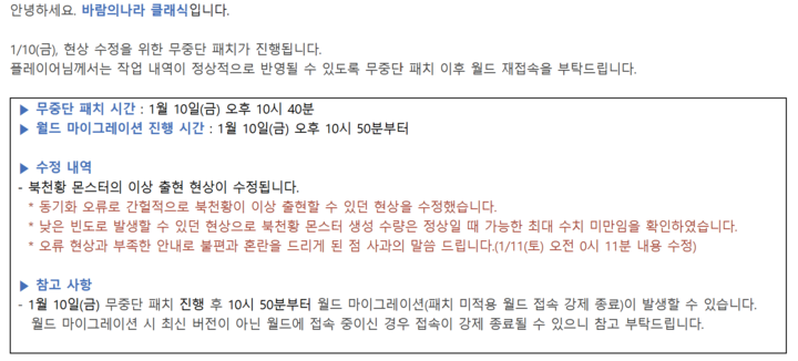 (MHN스포츠 이준 기자) 넥슨 메이플스토리 월드 '바람의나라 클래식(이하 바클)'에서 현금 300만 원 시세를 형성한 아이템을 드랍하는 몬스터가 넥슨 측의 의도와는 다르게 젠이 되는 사태가 발생했다.