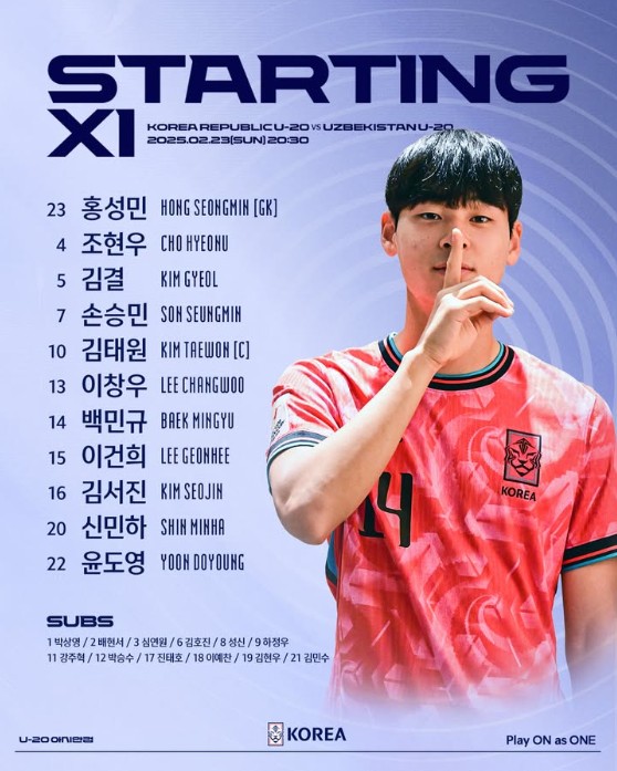 이창원 감독이 이끄는 한국은 23일 중국 선전의 유소년 축구 트레이닝 베이스에서 열린 2025 AFC U-20 아시안컵 8강전에서 우즈베키스탄과 승부차기간 끝에 승리를 거두고 4강에 진출했다.