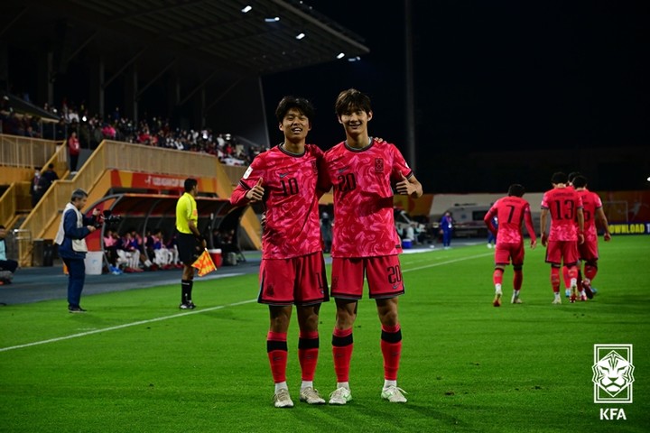 한국은 후반 11분 오른쪽 측면에서 얻은 프리킥을 윤도영이 날카로운 킥으로 연결했고, 신민하가 헤더로 골망을 흔들면서 2-1 역전에 성공했다.