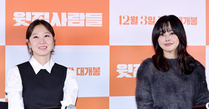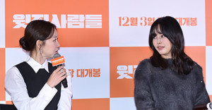 (MHN 이지숙 기자) 배우 공효진, 이하늬가 25일 오후 서울 강남구 메가박스 코엑스에서 열린 영화 ‘윗집 사람들’ 언론 시사회에 참석해 영화에 대한 이야기를 나누고 있다.‘윗집 사람들’은 매일 밤 섹다른 층간소음으로 인해 윗집 부부(하정우&이하늬)와 아랫집 부부(공효진&김동욱)가 함께 하룻밤 식사를 하게 되면서 벌어지는 예측불허 이야기를 담은 작품.오는 12월 3일 개봉한다.