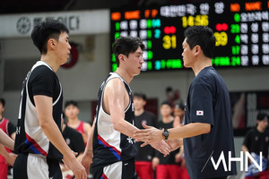 (MHN 안양, 박태성 기자) 25일 안양 정관장 아레나에서 2027 FIBA 농구 월드컵 아시아예선(W1) 대비 남자농구 국가대표팀 vs 안양 정관장 레드부스터스 연습경기가 열렸다.전희철 감독이 선수들을 맞이 하고 있다.