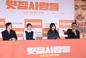 (MHN 이지숙 기자) 배우 김동욱, 공효진, 이하늬, 하정우가 25일 오후 서울 강남구 메가박스 코엑스에서 열린 영화 ‘윗집 사람들’ 언론 시사회에 참석해 영화에 대한 이야기를 나누고 있다.‘윗집 사람들’은 매일 밤 섹다른 층간소음으로 인해 윗집 부부(하정우&이하늬)와 아랫집 부부(공효진&김동욱)가 함께 하룻밤 식사를 하게 되면서 벌어지는 예측불허 이야기를 담은 작품.오는 12월 3일 개봉한다.
