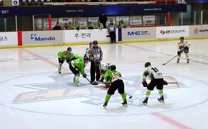 [윈터뉴스] 웨이브즈가 맞수 동양 이글스에 승리를 거뒀다 웨이브즈는 1일 안양 실내빙상장에서 열린 2015 코리아 아이스하키리그에서 캡틴 김동연과 골리 용현호의 활약으로 이글스를 3대1(1-0,1-1,1-0)로 꺾었다. 양 팀은 지난 7월 4일 이후 약 4개월 만에 대결을 했다 경기전적은 2-2(시범경기 포함 2-3). 웨이브즈는 이글스와 4번의 맞대결에서 2번을 슛 아웃 에서 승부를 가렸었다. 이 양팀은 누가뭐래도 최고의 라이벌팀. 오늘의 승부에선 웨이브즈가 승리를 가져갔다. 웨이브즈는 1피리어드 선취점