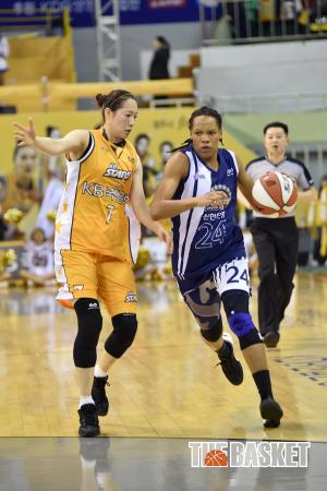 [윈터뉴스/더 바스켓=청주] 팽팽했던 승부는 6초 전 갈렸다. 인천 신한은행 에스버드는 1일 청주체육관에서 열린 KDB생명 2015~2016 여자프로농구 정규리그 청주 KB스타즈와의 경기에서 69-68로 이겼다. 신한은행은 경기 초반 분위기를 빼앗겼다. 1쿼터에만 턴오버가 6개나 나오며 공격이 원활하지 않았던 것. 그러나 4점차 뒤진 채 돌입한 2쿼터, 신한은행은 달라진 모습을 보였다. 2쿼터에도 역시 턴오버가 4개나 나왔지만, 하은주와 커리를 활용한 공격이 효과를 거뒀다. 결국 분위기를 가져오며 역전에 성공한 신한은행은 전반을 3