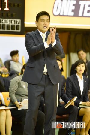 [윈터뉴스/더 바스켓=청주] “전체적으로 맞지 않는 부분이 많다” 청주 KB스타즈는 1일 청주체육관에서 열린 KDB생명 2015~2016 여자프로농구 정규리그 홈 개막전에서 인천 신한은행 에스버드에게 68-69로 패했다. KB스타즈는 시즌 초반부터 서동철 감독이 건강상의 문제로 자리를 비우며 당분간 박재헌 코치가 팀을 이끌게 된다. 박 코치는 경기 전 인터뷰에서 “당분간 팀을 이끌어야 한다는 부담감이 있지만 감독님께서 주문한 대로 잘 준비했다. 비시즌 선수들이 정말 많이 노력했다”고 말했다. KB스타즈는 경기 내내 대등한 경기를 펼