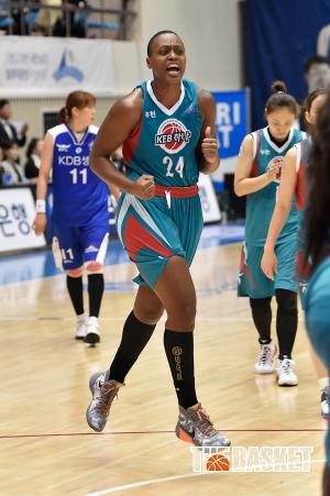 [윈터뉴스/더 바스켓=구리] 31일 오후 구리실내체육관에서 구리 KDB와 부천 KEB의 개막 경기가 열렸다. 1순위 용병 KEB 샤데 휴스턴이 공수에 걸쳐 맹활약을 펼쳤다.
