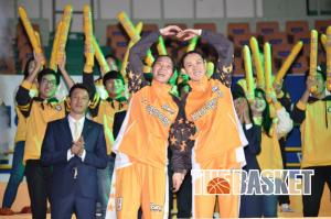 [윈터뉴스/더 바스켓=청주] 1일 오후 청주실내체육관에서 청주 KB국민은행과 인천 신한은행과의 경기가 열렸다. KB 변연하와 정미란이 홈팬들에게 하트를 선사하고 있다.