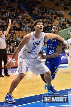 [윈터뉴스/더 바스켓=서울] 30일 오후 잠실실내체육관에서 서울 삼성와 전주 KCC의 경기가 열렸다. 삼성 김준일은 적극적인 공격리바운드 참여로 팁인 슛을 시도하고 있다.
