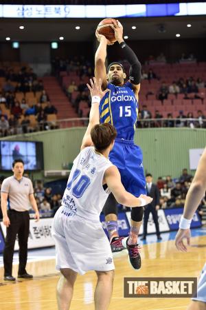 [윈터뉴스/더 바스켓=서울] 30일 오후 잠실실내체육관에서 서울 삼성와 전주 KCC의 경기가 열렸다. 삼성 문태영이 미들슛을 하고 있다.