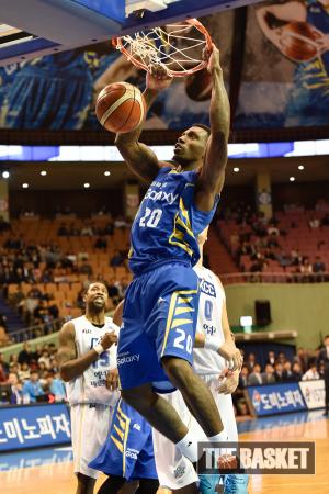 [윈터뉴스/더 바스켓=서울] 30일 오후 잠실실내체육관에서 서울 삼성와 전주 KCC의 경기가 열렸다. 삼성 라틀리프가 덩크슛을 하고 있다.