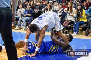 [윈터뉴스/더 바스켓=서울] 30일 오후 잠실실내체육관에서 서울 삼성와 전주 KCC의 경기가 열렸다. KCC 전태풍과 삼성 라틀리프가 공을 쟁취하기 위해 온몸을 날려 뒤엉키고 있다.