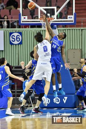 [윈터뉴스/더 바스켓=서울] 30일 오후 잠실실내체육관에서 서울 삼성와 전주 KCC의 경기가 열렸다. 삼성 라틀리프가 KCC 하승진의 슛을 블록하고 있다.