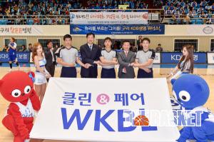 [윈터뉴스/더 바스켓=구리] 31일 오후 구리실내체육관에서 구리 KDB와 부천 KEB의 개막 경기가 열렸다. 경기에 앞서 양팀 감독과 심판진들이 페어플레이를 다짐하는 클린&페어 행사를 가졌다.