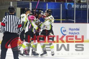 한양대가 대회 첫 승을 올렸다.한양대는 23일 안양 실내빙상장에서 열린 2015코리아 아이스하키 리그 2일째 1학년생들의 활약에 힘입어 경희대를 6대3(5-1,1-1,0-1)으로 물리치고 1승을 챙겼다.1피리어드에서만 한양대는 5골을 몰아넣었다. 한양대는 1피리어드 4분 32초 정형수(1년, F)의 패스를 받은 최윤석(1년, F)이 스냅샷으로 선취점을 올렸다.이내 경희대는 7분 55초 김태선(1년, F)이 파워플레이 골을 넣으며 균형을 맞추는가 싶었다.그러나 한양대는 이후 5분 동안 3골을 몰아넣는 기염을 토했다. 9분 40초, 1