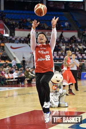 [윈터뉴스/더 바스켓=서울] 25일 오후 잠실학생체육관에서 서울 SK와 원주 동부의 경기가 열렸다. 프로골퍼 최경주가 경기에 앞서 시투하고 있다.