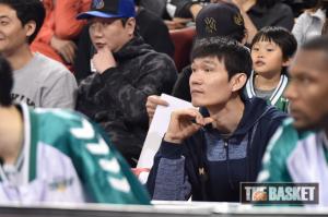 [더 바스켓=서울] 25일 오후 잠실학생체육관에서 서울 SK와 원주 동부의 경기가 열렸다. 부상으로 장기 결장 중인 김주성이 관중석에서 경기를 지켜보고 있다.