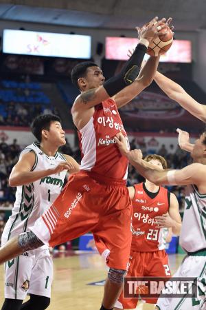 [윈터뉴스/더 바스켓=서울] 25일 오후 잠실학생체육관에서 서울 SK와 원주 동부의 경기가 열렸다. SK 이승준이 적극적인 리바운드 가담으로 공을 따내고 있다.