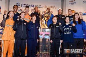 [윈터뉴스/더 바스켓=서울] 19일 오전 청담 리베라호텔에서 WKBL 미디어데이가 열렸다. 각팀 대표선수와 용병이 포즈를 취하고 있다.