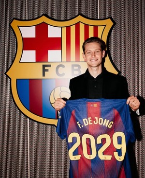(MHN 금윤호 기자) 만능 미드필더 프렝키 더 용이 한때 자신을 내보내려고 했던 FC바르셀로나와 재계약을 맺으며 여전한 충성심을 드러냈다.바르셀로나는 15일 구단 홈페이지를 통해 "더 용과 계약을 2029년까지로 연장했다. 그와 계약서에 서명을 마쳤다"고 공식 발표했다.스페인 매체 '문도 데포르티보'에 따르면 바르셀로나는 더 용과 계약서에 바이아웃 조항을 삽입했으며, 해당 금액은 5억 유로(약 8,280억 원)에 이른다.1997년생 네덜란드 출신 미드필더 더 용은 2016년 자국 명문 구단인 아약스에서 프로 데뷔한 뒤 2018-2