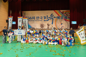 ‘제66회 한국민속예술제’가 9월 26일부터 28일까지 충북 영동군에서 개최되어 성황리에 막을 내렸다. 전국에서 모인 32개 단체, 약 1,400명의 참가자가 전통 민속예술을 선보인 가운데, 울산쇠부리소리와 강릉 농사풀이 농악이 각각 일반부와 청소년부 대통령상을 수상했다. 경연 영상은 10월 중 유튜브를 통해 공개될 예정이다.