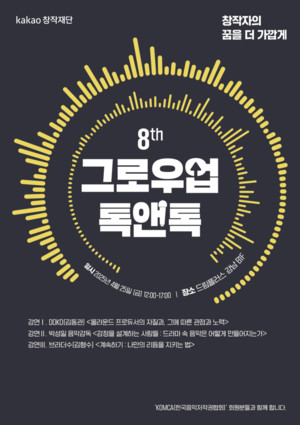 (MHN 이지원 인턴기자) 카카오창작재단의 ‘그로우업 톡앤톡’이 음악 분야 창작진들을 위한 강연 프로그램을 처음으로 선보인다. 오는 25일 오후 12시부터 5시까지 서울 강남 드림플러스에서 카카오엔터테인먼트와 카카오창작재단이 음악 분야 예비 창작자를 위한 강연 프로그램 ‘제8회 그로우업 톡앤톡’을 개최한다. 이번 행사는 사단법인 한국음악저작권협회와 협업으로 진행하며, 약 100명의 예비 음악 창작자를 대상으로 진행된다.‘그로우업 톡앤톡’은 예비 창작자를 비롯해 문화 콘텐츠 산업에 관심 있는 모든 사람을 대상으로 무료로 진행되는 오프