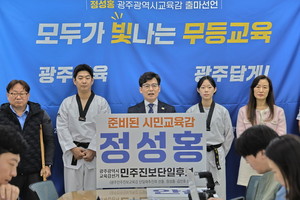 정성홍 전 광주시교육감이 민주진보 단일후보로 오는 교육감 선거 출마를 공식 선언하며 ‘나다움을 찾는 행복교육’, ‘동행교육’ 등 3대 방향과 10대 핵심공약을 제시했다.