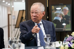 (MHN 박태성 기자) 12일 서울 중구 프레스센터 서울클럽홀에서 ‘대한민국 1호 프로골프 선수 故 연덕춘(1916~2004) 역사와 전설을 복원하다’ 기념 관련 기자회견을 가졌다.이날 KPGA 김원섭 회장, 강형모 대한골프협회 회장, 일본골프협회 야마나카 히로시 최고 운영 책임자가 참석했다.풍산그룹 류진 회장이 인사들과 담소를 나누고 있다.