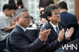 (MHN 박태성 기자) 12일 서울 중구 프레스센터 서울클럽홀에서 ‘대한민국 1호 프로골프 선수 故 연덕춘(1916~2004) 역사와 전설을 복원하다’ 기념 관련 기자회견을 가졌다.이날 KPGA 김원섭 회장, 강형모 대한골프협회 회장, 일본골프협회 야마나카 히로시 최고 운영 책임자가 참석했다.김원섭 회장과 야마나카 히로시 책임자가 복원 과정을 바라보고 있다.
