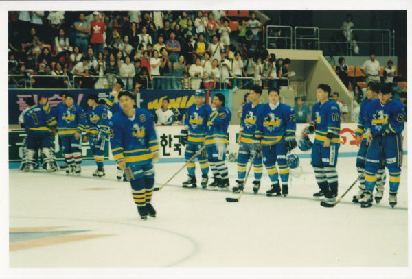 97전주-무주 동계유니버시아드대회를 치르고 난 뒤 생긴 전주실내빙상장에서였다. 대회에는 캐나다 캘거리대학팀, 체코 클라루피, 일본 후루가와전공, 그리고 만도가 참가했다.