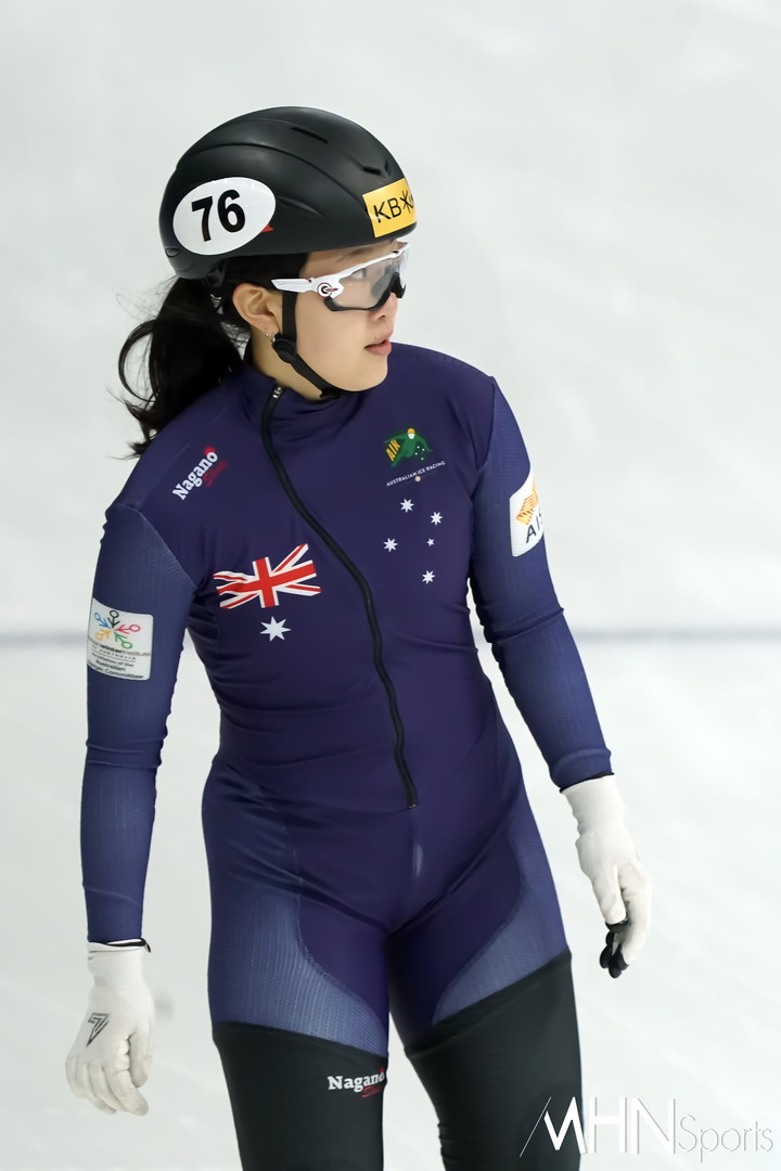 (MHN스포츠 박태성 기자) 호주 김효진이 15일 서울 목동 아이스링크에서 'KB금융 CUP-국제빙상연맹(ISU) 쇼트트랙 월드컵 2023/24' 1500미터 준준결승전 경기를 펼치고 있다.
