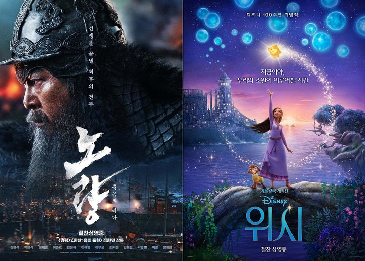 사진=영화 '서울의 봄', '위시', '노량: 죽음의 바다' 포스터