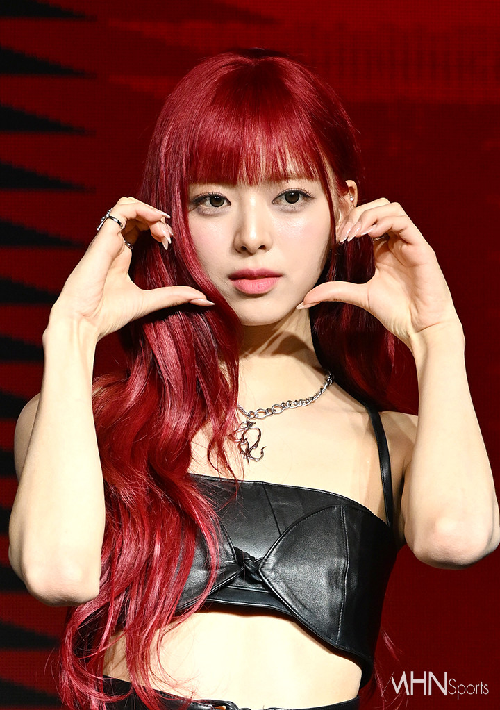 있지 유나가 포토타임을 위해 포즈를 취하고 있다.