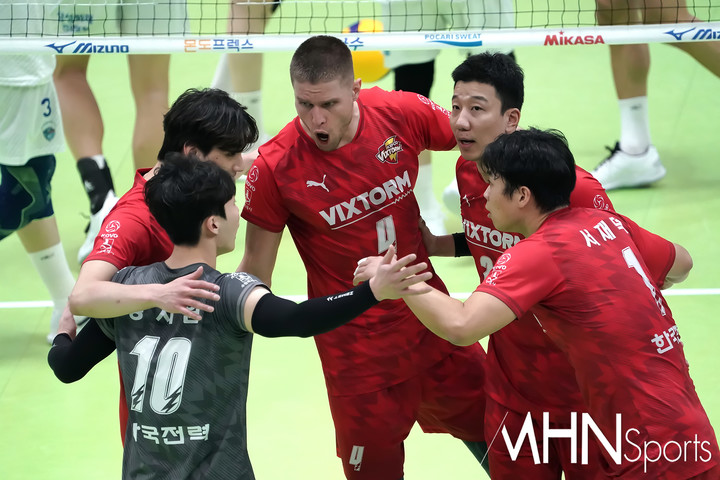 (MHN스포츠 수원, 박태성 기자) 한국전력이 11일 경기도 수원시 수원실내체육관에서 열린 23-24시즌 도드람 V리그 한국전력 VS 삼성화재 경기에서 세트 점수 3-0(25-17, 25-22, 25-15)으로 이겼다.
