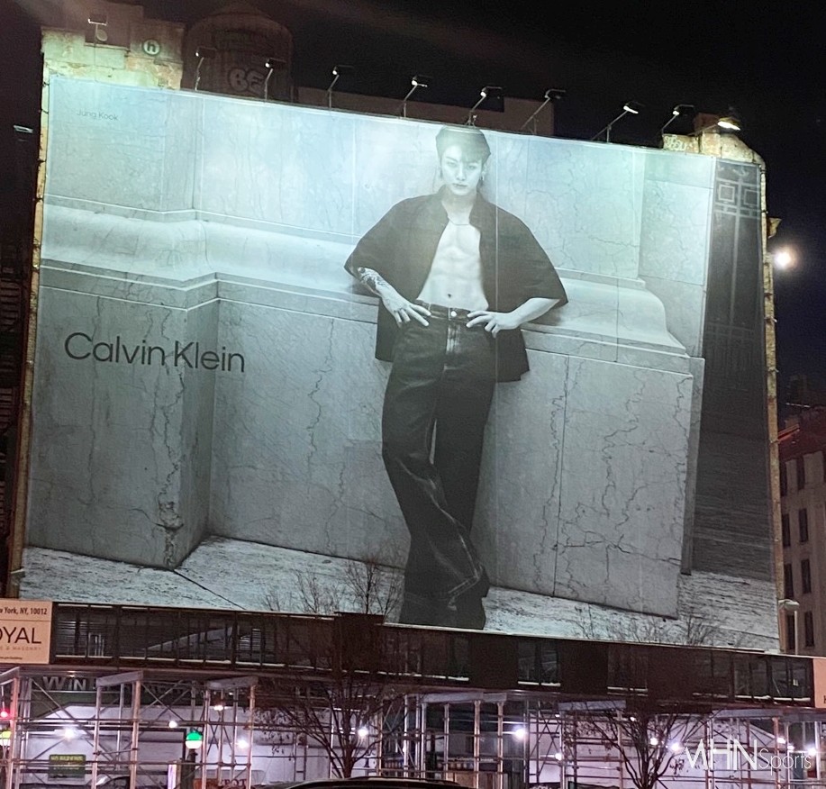 최근 미국 뉴욕 맨해튼 소호 거리 빌보드 대형 전광판에서 방탄소년단 정국의 캠페인 화보가 포착됐다.
