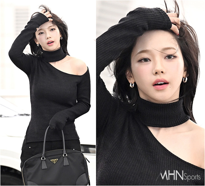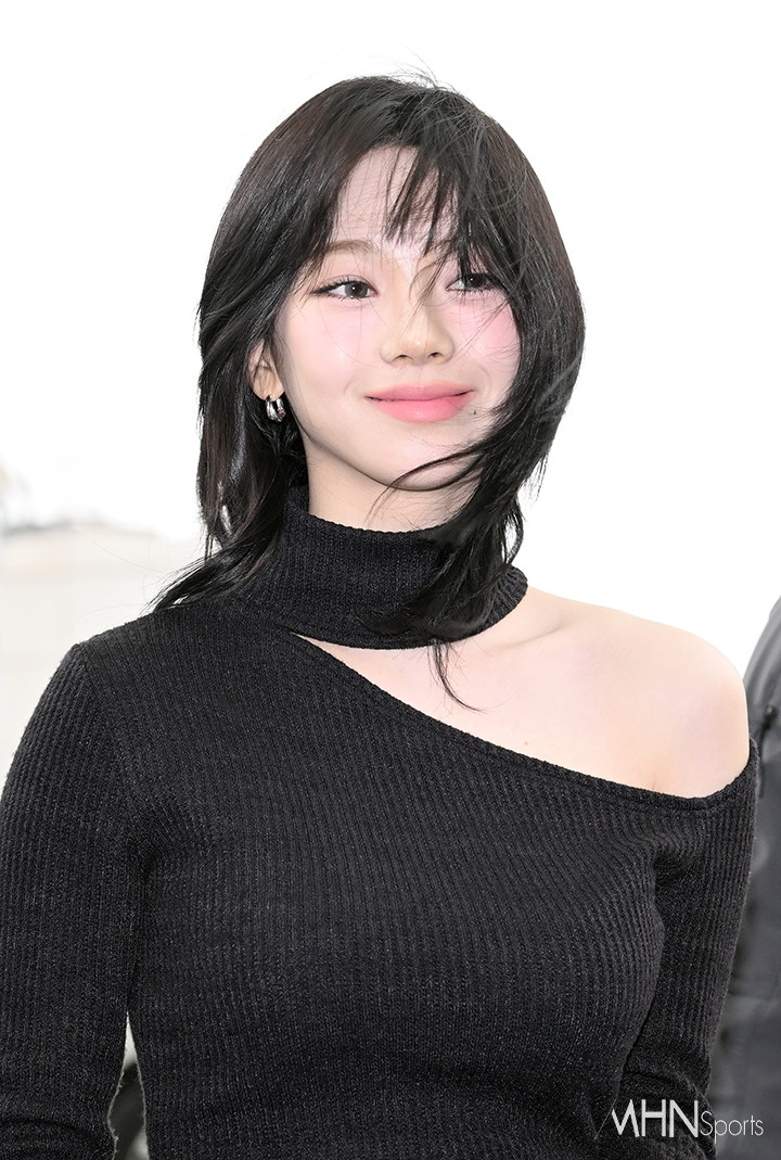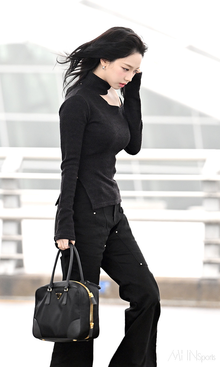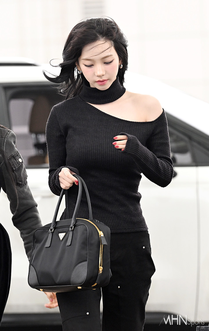 (MHN스포츠 인천공항, 이현지 기자) 그룹 에스파 카리나가 설렘을 불러오는 미모를 뽐냈다.