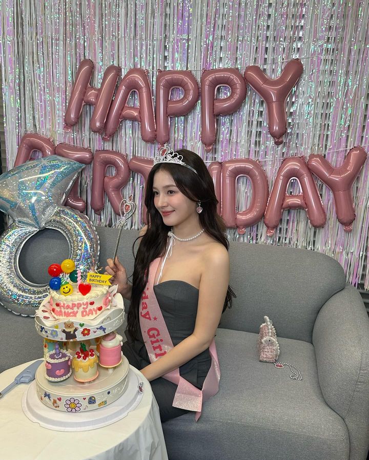 공개된 사진 속 낸시는 슬리브리스 원피스를 입고 포즈를 취하거나, 검은색 원피스를 입고 생일 케이크 앞에서 포즈를 취하고 있다.