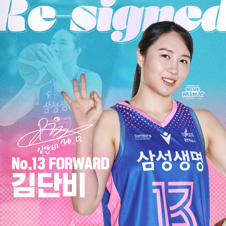 재계약을 통해 삼성생명과 다시 한 번 함께하게 된 김단비는 "지난 시즌 부상으로 아쉬움이 있었다"며 "(그럼에도) 저에게 믿음을 주신 구단에 감사드린다. 선수들과 함꼐 힘을 모아 다음 시즌 좋은 모습을 보여드릴 수 있도록 최선을 다하겠다"고 전했다.