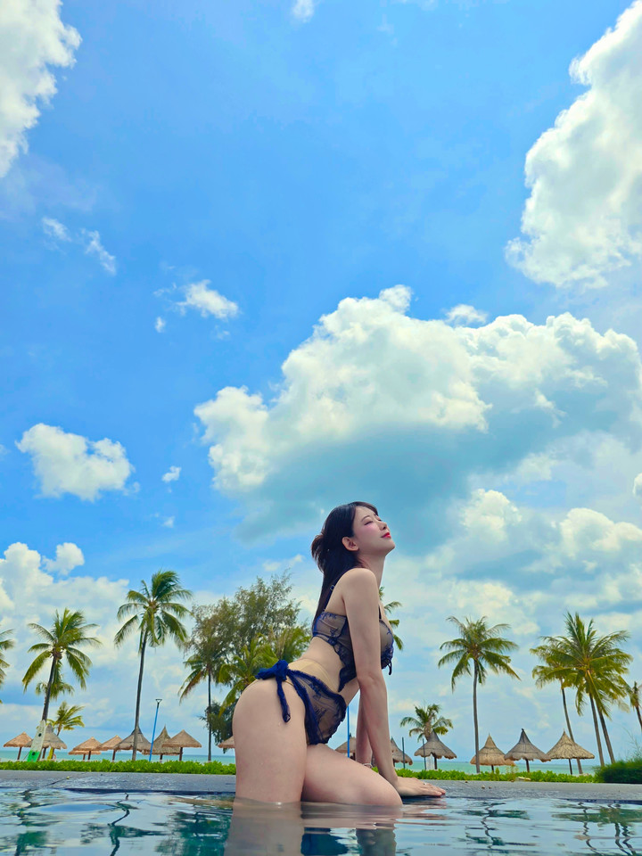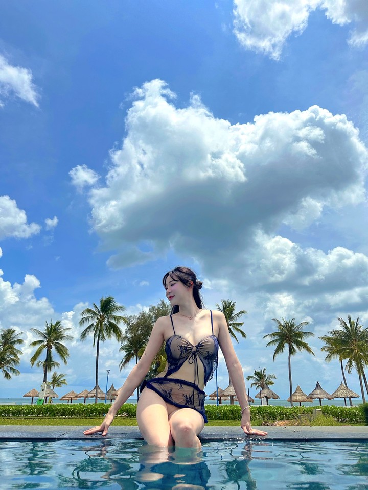 사진에서는 푸꾸옥의 청명한 날씨와 더불어 김한나 치어리더의 눈을 뗄 수 없는 비키니룩이 시선을 모았다.
