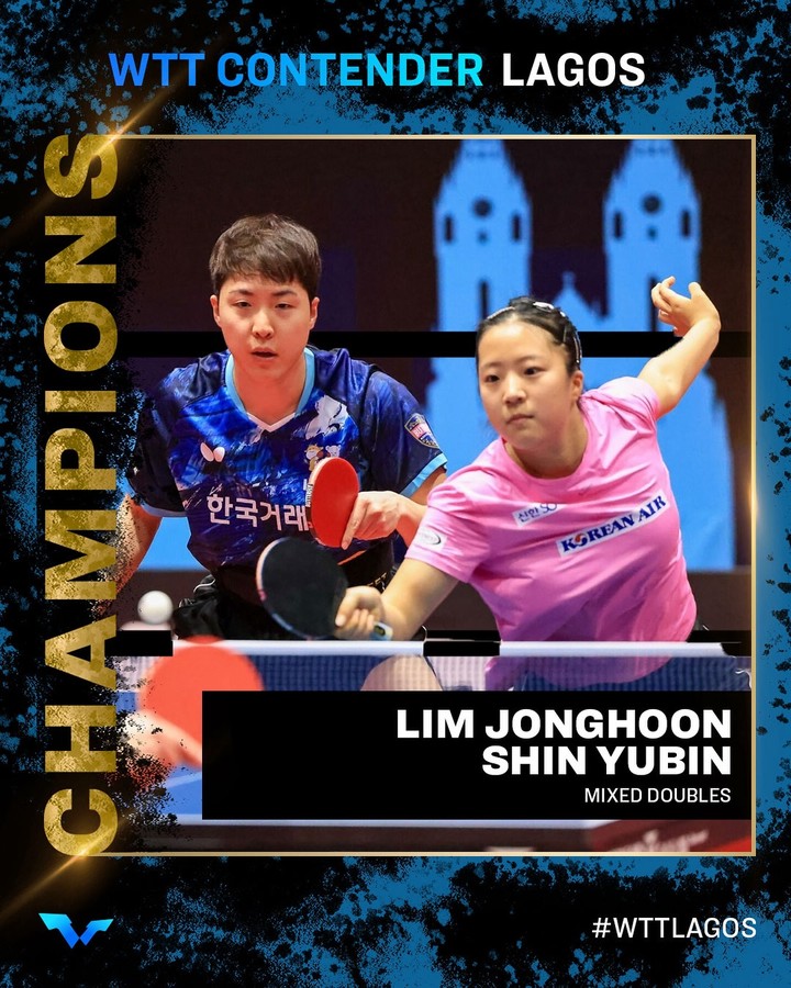 신유빈-임종훈 조(세계랭킹 2위)는 22일 나이지리아 라고스에서 열린 대회 혼합복식 결승에서 쉬후이야오-뤼제청 조(중국)를 3-0(11-4 11-9 11-4)로 꺾었다.