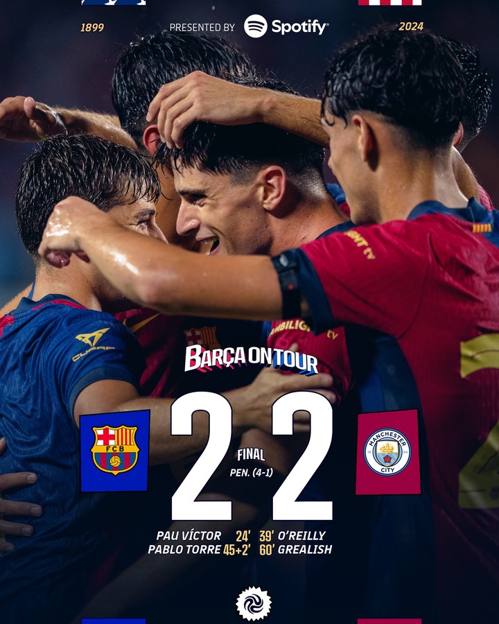 하지만 추가골이 나오지 않으면서 두 팀은 연장전 없이 승부차기에 돌입했고, 맨시티의 1, 2번째 키커가 실패하는 사이 바르셀로나는 모두 성공시키면서 4-1로 승리를 거뒀다.