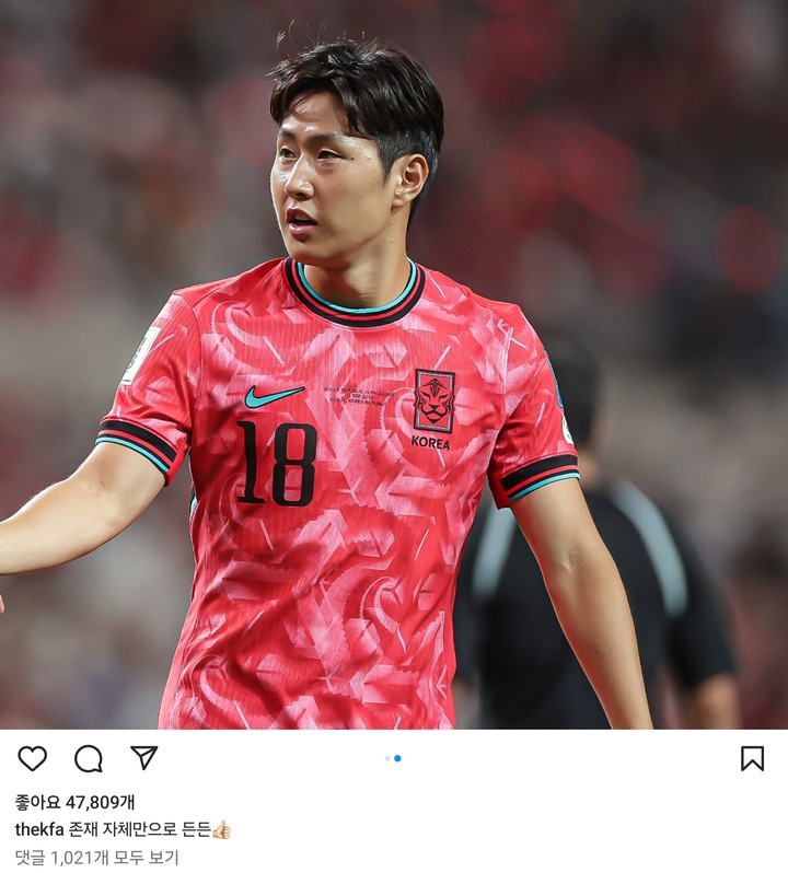 특히 축구협회는 같은 날 이강인과 손흥민의 사진을 올린 게시글을 통해서는 "존재 자체만으로 든든"이라는 글귀를 덧붙였다.