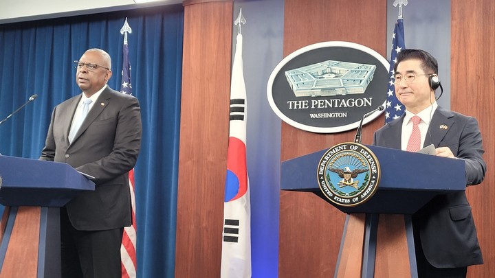지난 30일(현지 시각) 미 국방부에서 주최된 안보협의회의(SCM)에서 제56차 한미 국방장관 공동 기자회견이 열렸다.