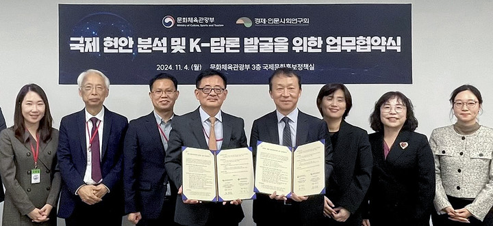 지난 4일 문제부는 경사연과 업무협약을 체결했다고 밝혔다. 문체부는 이를 통해 급변하는 국제 정세를 깊이 있게 분석하고 우리나라가 글로벌 중추 국가로 나아가는 데 실질적 도움이 되는 정책 자료를 생산할 방침이다.