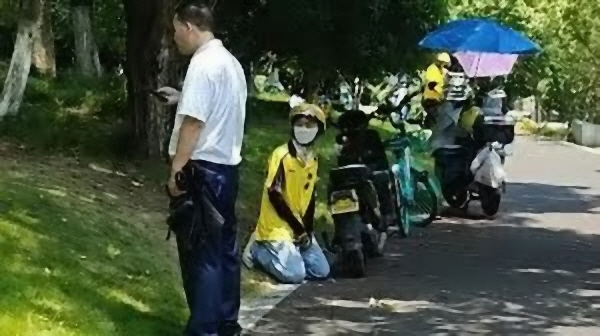 중국 SNS에서는 배달 라이더의 수난을 담은 게시물이 우후죽순 쏟아지고 있는데, 지난 8월에는 한 배달원이 경비원에게 무릎을 꿇은 영상이 화제가 되어 수백 명의 배달원들이 항저우에서 집단 시위를 벌이기도 했다.