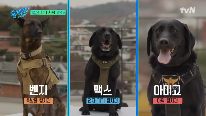 한편, 11일 오후 8시 45분 방송하는 '유퀴즈' 272회에는 로제를 비롯해 대한민국을 지키는 '멍벤져스' 벤지(폭발물 탐지견), 맥스(전자 기기 탐지견), 아미고(마약 탐지견)을 비롯해 족집게 기상학자 김해동 교수도 함께 출연해 에피소드를 꾸밀 예정이다.
