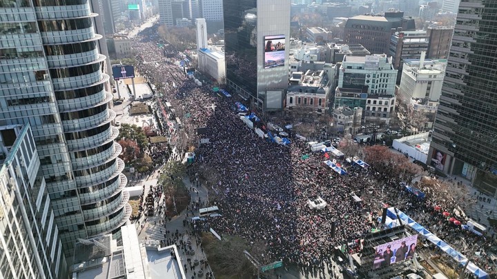 광화문을 가득 메운 인파는 "탄핵 반대"를 외치며, 이번 탄핵 표결이 대한민국의 미래를 결정할 분수령이 될 것이라 강조했다.