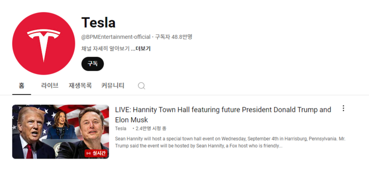 지난 9월에는 빅플래닛메이드 아티스트 공식 유튜브 채널 이름이 전기자동차 브랜드 테슬라로 변경됐었으며, 도널드 트럼프 대통령과 일론 머스크의 라이브 방송이 송출됐다.