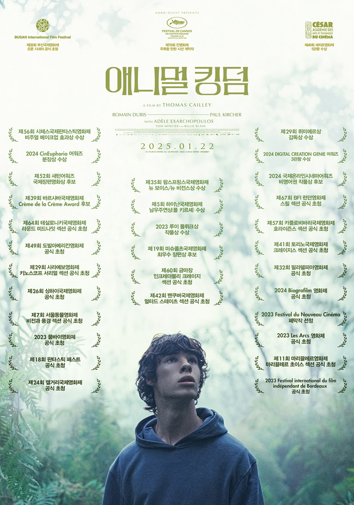 지난 3일 선공개된 어워즈 포스터는 제76회 칸영화제 주목할 만한 시선 개막작으로 선정된 것을 비롯해 제49회 세자르영화제 촬영상, 음악상 등 5관왕, 제56회 시체스국제판타스틱영화제 비주얼 메이크업 효과상, 제35회 팜스프링스국제영화제 뉴 보이스/뉴 비전스상 등을 수상한 기록을 담아냈다. 국내에서는 제28회 부산국제영화제, 제7회 서울동물영화제, 제11회 마리끌레르영화제를 통해 먼저 관객들에게 소개된 바 있다.