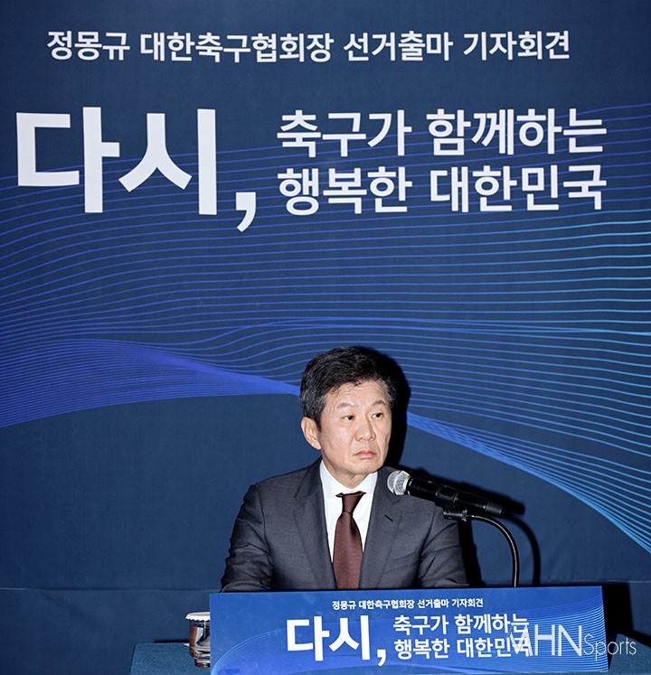 이에 정몽규 후보는 지난해 12월 26일 출마 기자회견을 열고 선거 공약을 내걸었다. 그가 강조한 것은 '신뢰 회복'과 '국제 경쟁력 강화' '축구사업과 저변 확대' 등이다. 정 후보는 이날 집행부 인적 쇄신과 선거인단 확대, 대표팀 감독 선임 방식 재정립, 남녀 대표팀 국제축구연맹(FIFA) 10위권 진입, 2031 아시안컵 유치 등의 공약을 제시했다.